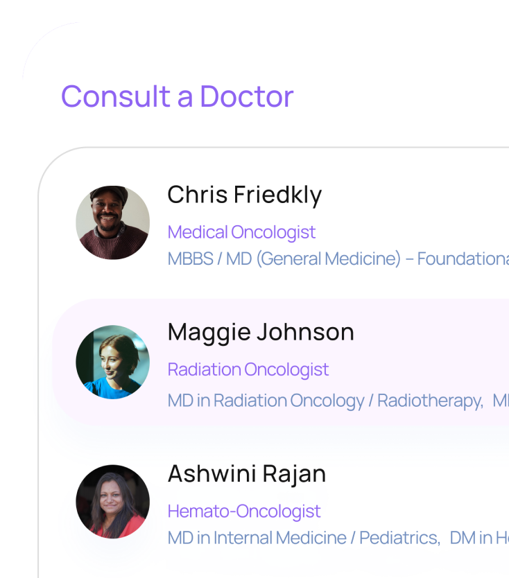 Your case undergoes a thorough review by our virtual tumor board, comprising multiple senior oncologists.